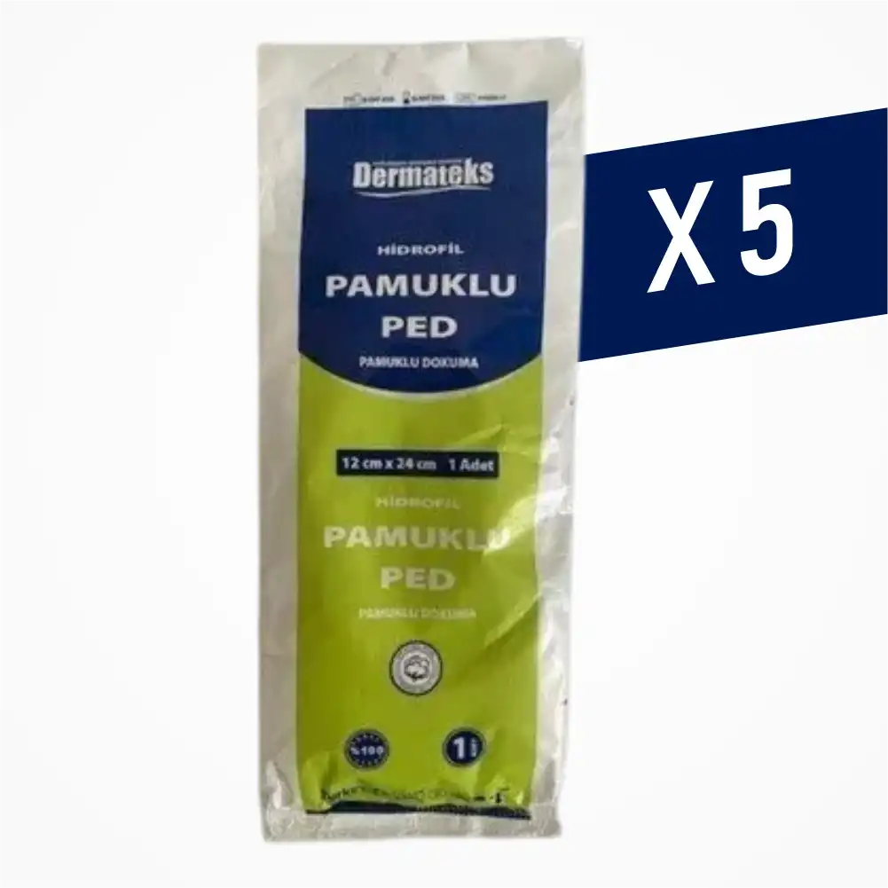 Dermateks Steril Pamuklu Ped 12cm x 24cm - 5 Adet