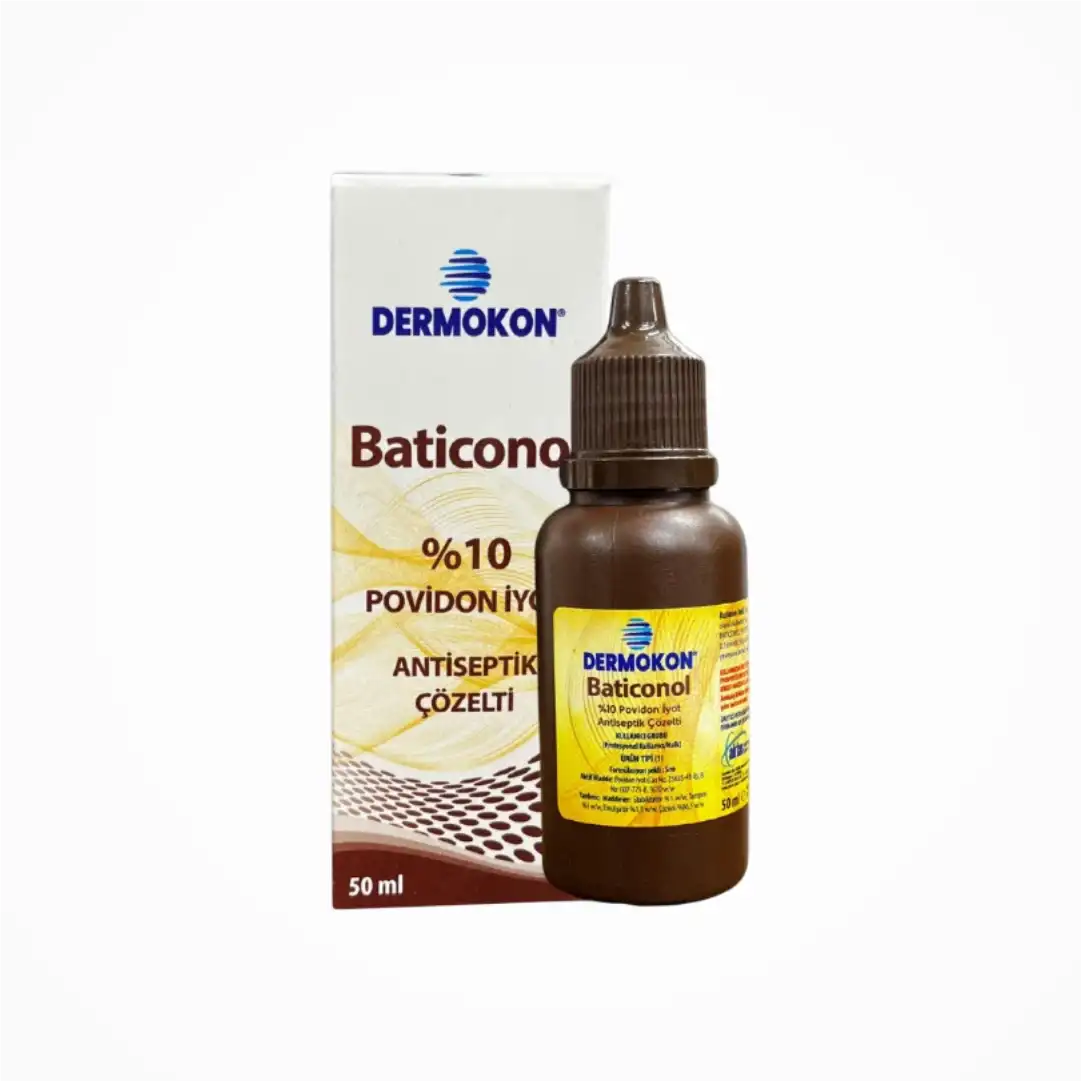 Dermokon Batikon Antiseptik Çözelti 50 ml, cilt ve yara temizliğinde kullanılan, mikrop ve bakterilere karşı etkili antiseptik bir çözelti türüdür.