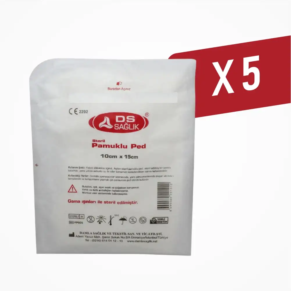 DS Damla Sağlık Steril Pamuklu Ped 10cm x 15cm - 5 Adet