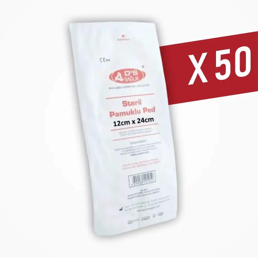 DS Damla Sağlık Steril Pamuklu Ped 12cm x 24cm - 50 Adet