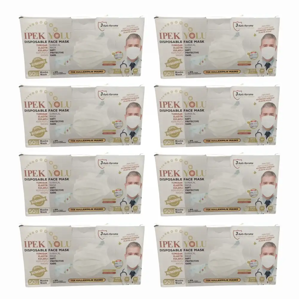 Tek Kullanımlık Maske 3 Katlı Telli Meltblownlu 50'li Kutu - Beyaz x 8 Kutu