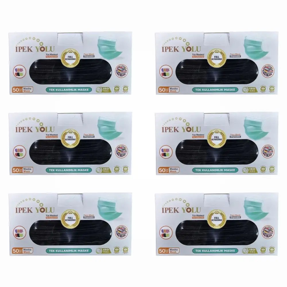 Tek Kullanımlık Maske 3 Katlı Telli Meltblownlu 50'li Kutu Siyah - 6 Kutu